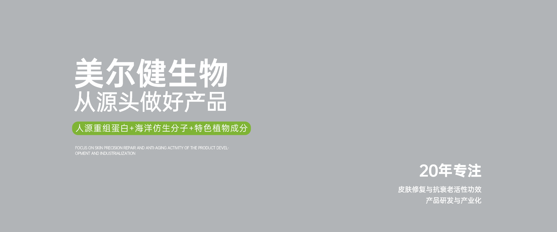 美尔健生物 是一家依托赢领的生物透皮技术与绿色合成生物制造,专注新型生物功效活性材料开发、制造与整体方案输出的国家高新技术企业。 公司专注“皮肤内源分子”、 “海洋仿生分子”和“特色植物资源”的研究,具备从上游分子设计、工艺开发和功效验证到下游原料生产以及终端产品生产贯通的上下游产业链。